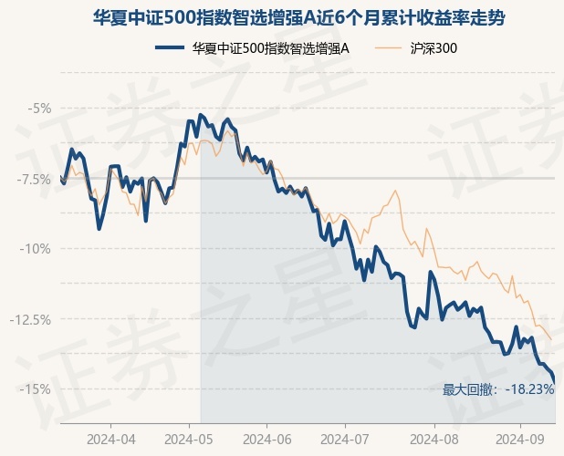 证券之星消息,9月13日,华夏中证500指数智选增强A最新单位净值为0.8098元,累计净值为0.8098元,较前一交易日下跌0.82%。历史数据显示该基金近1个月下跌6.25%,近3个月下跌13.6%,近6个月下跌14.57%,近1年下跌15.76%。该基金近6个月的累计收益率走势如下图: