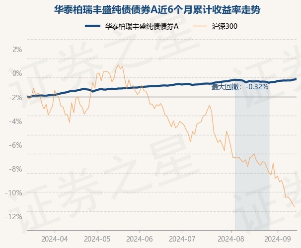 证券之星消息,9月13日,华泰柏瑞丰盛纯债债券A最新单位净值为1.1384元,累计净值为1.602元,较前一交易日上涨0.05%。历史数据显示该基金近1个月上涨0.27%,近3个月上涨0.73%,近6个月上涨1.84%,近1年上涨3.99%。该基金近6个月的累计收益率走势如下图: