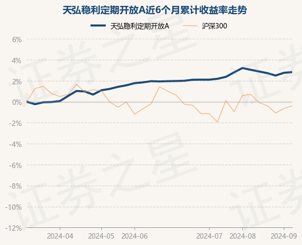 证券之星消息,9月13日,天弘稳利定期开放A最新单位净值为1.3529元,累计净值为1.6915元,较前一交易日上涨0.07%。历史数据显示该基金近1个月下跌0.21%,近3个月上涨1.04%,近6个月上涨2.83%,近1年上涨6.59%。该基金近6个月的累计收益率走势如下图: