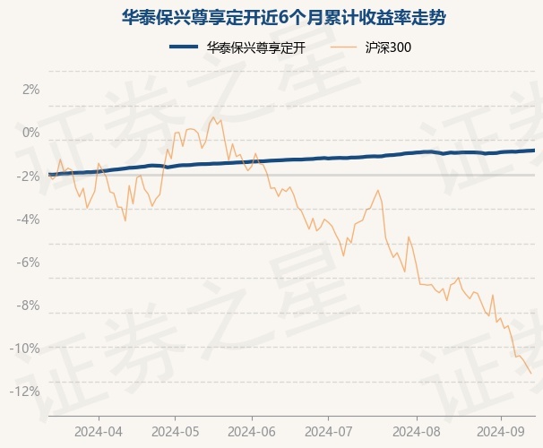 证券之星消息,9月13日,华泰保兴尊享定开最新单位净值为1.1228元,累计净值为1.1708元,较前一交易日上涨0.02%。历史数据显示该基金近1个月上涨0.16%,近3个月上涨0.57%,近6个月上涨1.4%,近1年上涨4.4%。该基金近6个月的累计收益率走势如下图: