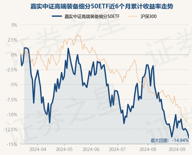 证券之星消息,9月13日,嘉实中证高端装备细分50ETF最新单位净值为0.6079元,累计净值为0.6079元,较前一交易日下跌0.99%。历史数据显示该基金近1个月下跌8.14%,近3个月下跌12.87%,近6个月下跌14.02%,近1年下跌26.53%。该基金近6个月的累计收益率走势如下图: