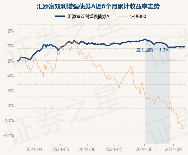 证券之星消息,9月13日,汇添富双利增强债券A最新单位净值为1.0572元,累计净值为1.5085元,较前一交易日上涨0.09%。历史数据显示该基金近1个月下跌0.39%,近3个月下跌0.31%,近6个月上涨2.33%,近1年上涨1.17%。该基金近6个月的累计收益率走势如下图: