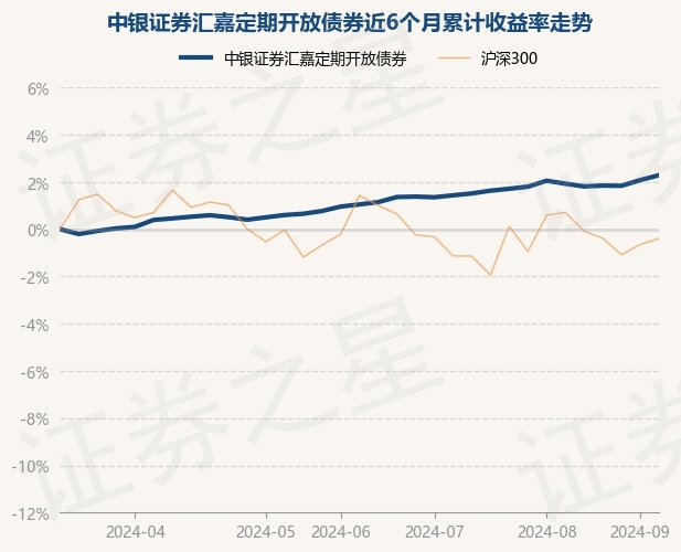 中银证券汇嘉定期开放债券为债券型-长债基金,根据最新一期基金季报显示,该基金资产配置:无股票类资产,债券占净值比99.19%,现金占净值比0.84%。