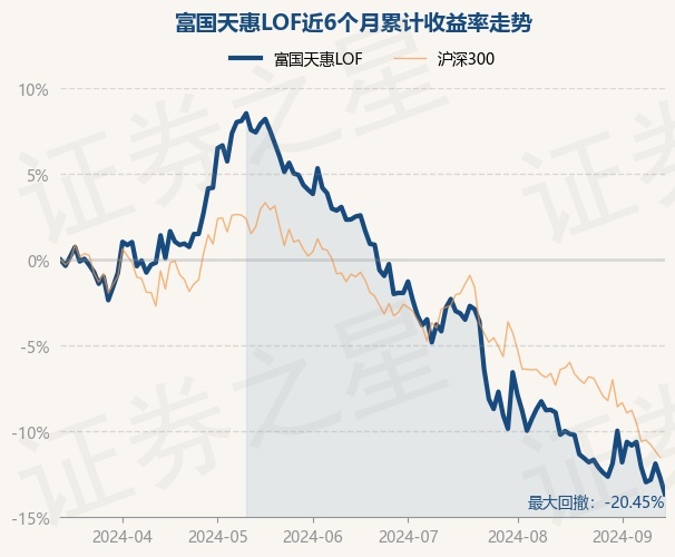 证券之星消息,9月13日,富国天惠LOF最新单位净值为2.0709元,累计净值为5.1189元,较前一交易日下跌1.1%。历史数据显示该基金近1个月下跌5.23%,近3个月下跌15.63%,近6个月下跌13.65%,近1年下跌19.72%。该基金近6个月的累计收益率走势如下图: