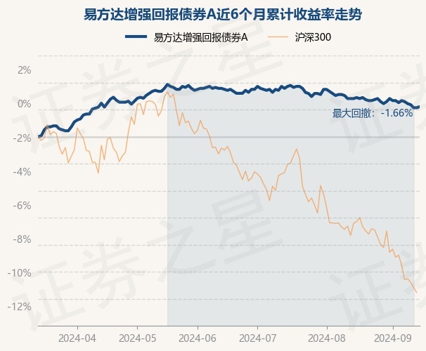 证券之星消息,9月13日,易方达增强回报债券A最新单位净值为1.36元,累计净值为2.547元,较前一交易日上涨0.07%。历史数据显示该基金近1个月下跌0.58%,近3个月下跌1.31%,近6个月上涨2.22%,近1年上涨5.94%。该基金近6个月的累计收益率走势如下图: