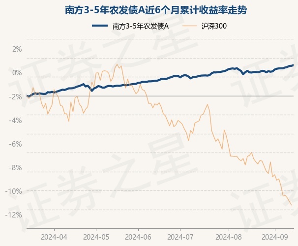 证券之星消息,9月13日,南方3-5年农发债A最新单位净值为1.0863元,累计净值为1.2393元,较前一交易日上涨0.08%。历史数据显示该基金近1个月上涨0.74%,近3个月上涨1.68%,近6个月上涨3.25%,近1年上涨5.32%。该基金近6个月的累计收益率走势如下图: