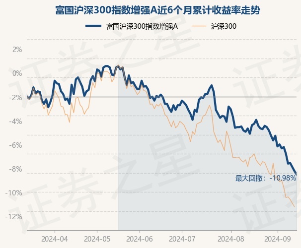 证券之星消息,9月13日,富国沪深300指数增强A最新单位净值为1.322元,累计净值为1.908元,较前一交易日下跌0.38%。历史数据显示该基金近1个月下跌4.96%,近3个月下跌7.75%,近6个月下跌8.13%,近1年下跌10.55%。该基金近6个月的累计收益率走势如下图: