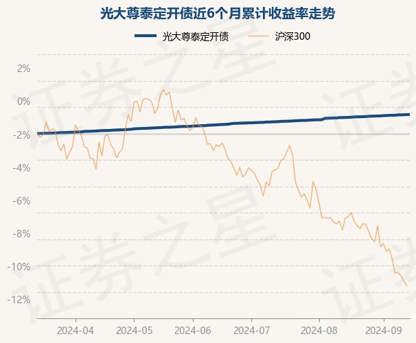 证券之星消息,9月13日,光大尊泰定开债最新单位净值为1.0281元,累计净值为1.1361元,较前一交易日上涨0.01%。历史数据显示该基金近1个月上涨0.23%,近3个月上涨0.79%,近6个月上涨1.45%,近1年上涨2.79%。该基金近6个月的累计收益率走势如下图: