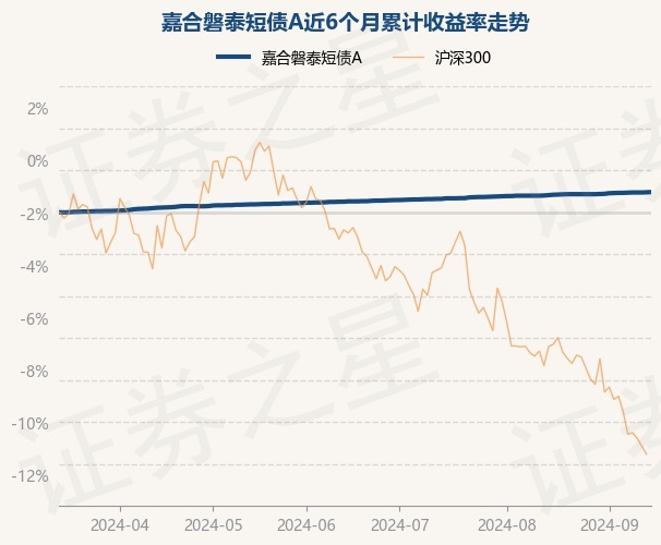 嘉合磐泰短债A为债券型-中短债基金,根据最新一期基金季报显示,该基金资产配置:无股票类资产,债券占净值比101.42%,现金占净值比0.04%。