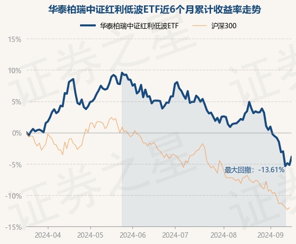 证券之星消息,9月18日,华泰柏瑞中证红利低波ETF最新单位净值为0.9594元,累计净值为1.9188元,较前一交易日上涨1.37%。历史数据显示该基金近1个月下跌7.05%,近3个月下跌8.52%,近6个月下跌3.87%,近1年上涨1.02%。该基金近6个月的累计收益率走势如下图: