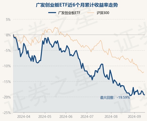 证券之星消息,9月18日,广发创业板ETF最新单位净值为0.9189元,累计净值为0.9189元,较前一交易日下跌0.12%。历史数据显示该基金近1个月下跌3.55%,近3个月下跌15.07%,近6个月下跌19.38%,近1年下跌23.25%。该基金近6个月的累计收益率走势如下图: