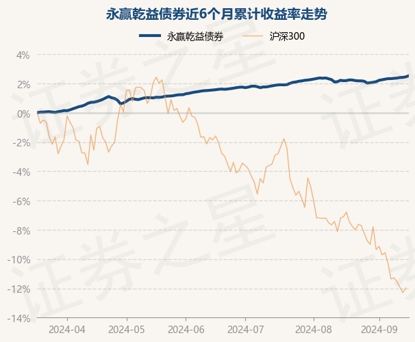 证券之星消息,9月18日,永赢乾益债券最新单位净值为1.0819元,累计净值为1.1159元,较前一交易日上涨0.07%。历史数据显示该基金近1个月上涨0.32%,近3个月上涨0.94%,近6个月上涨2.53%,近1年上涨4.76%。该基金近6个月的累计收益率走势如下图: