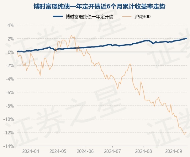 证券之星消息,9月18日,博时富璟纯债一年定开债最新单位净值为1.0297元,累计净值为1.095元,较前一交易日上涨0.0%。历史数据显示该基金近1个月上涨0.73%,近3个月上涨1.31%,近6个月上涨2.12%,近1年上涨4.37%。该基金近6个月的累计收益率走势如下图: