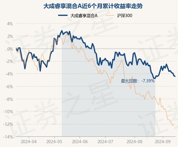 证券之星消息,9月18日,大成睿享混合A最新单位净值为1.3046元,累计净值为1.5189元,较前一交易日下跌0.08%。历史数据显示该基金近1个月下跌1.73%,近3个月下跌5.18%,近6个月下跌4.45%,近1年下跌5.65%。该基金近6个月的累计收益率走势如下图: