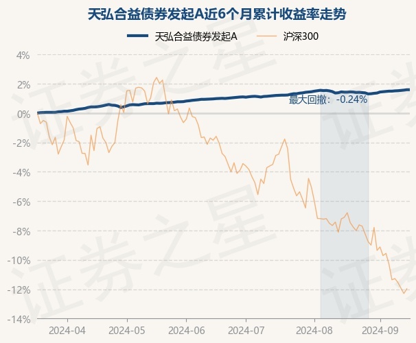 证券之星消息,9月18日,天弘合益债券发起A最新单位净值为1.041元,累计净值为1.0989元,较前一交易日上涨0.0%。历史数据显示该基金近1个月上涨0.21%,近3个月上涨0.65%,近6个月上涨1.64%,近1年上涨3.74%。该基金近6个月的累计收益率走势如下图: