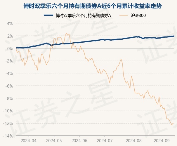 证券之星消息,9月18日,博时双季乐六个月持有期债券A最新单位净值为1.1098元,累计净值为1.1098元,较前一交易日上涨0.0%。历史数据显示该基金近1个月上涨0.33%,近3个月上涨0.81%,近6个月上涨1.98%,近1年上涨5.32%。该基金近6个月的累计收益率走势如下图: