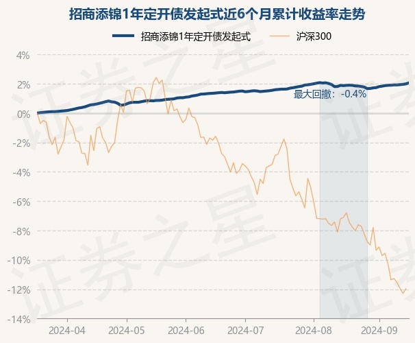 证券之星消息,9月18日,招商添锦1年定开债发起式最新单位净值为1.0525元,累计净值为1.132元,较前一交易日上涨0.07%。历史数据显示该基金近1个月上涨0.16%,近3个月上涨0.68%,近6个月上涨2.06%,近1年上涨4.23%。该基金近6个月的累计收益率走势如下图: