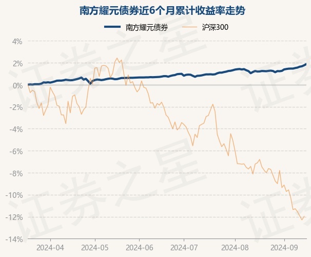 证券之星消息,9月18日,南方耀元债券最新单位净值为1.0217元,累计净值为1.0547元,较前一交易日上涨0.11%。历史数据显示该基金近1个月上涨0.66%,近3个月上涨1.13%,近6个月上涨1.88%,近1年上涨3.55%。该基金近6个月的累计收益率走势如下图: