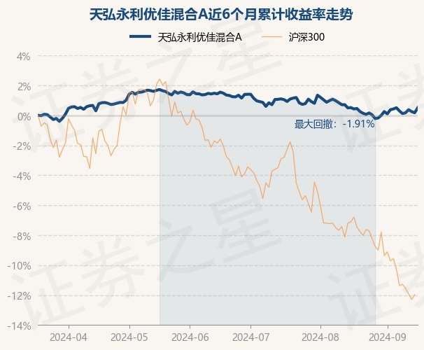 证券之星消息,9月18日,天弘永利优佳混合A最新单位净值为0.9836元,累计净值为0.9836元,较前一交易日上涨0.33%。历史数据显示该基金近1个月上涨0.07%,近3个月下跌1.04%,近6个月上涨0.5%,近1年上涨1.51%。该基金近6个月的累计收益率走势如下图: