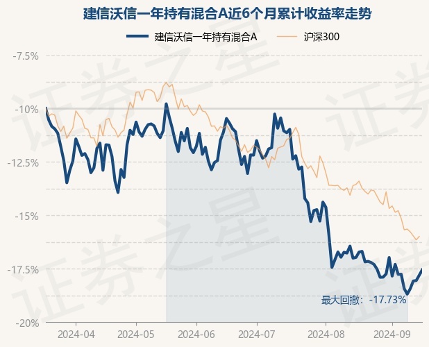 证券之星消息,9月18日,建信沃信一年持有混合A最新单位净值为0.5875元,累计净值为0.5875元,较前一交易日上涨0.6%。历史数据显示该基金近1个月下跌1.9%,近3个月下跌14.28%,近6个月下跌15.09%,近1年下跌14.83%。该基金近6个月的累计收益率走势如下图: