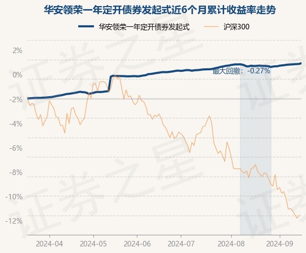 证券之星消息,9月18日,华安领荣一年定开债券发起式最新单位净值为1.0466元,累计净值为1.116元,较前一交易日上涨0.07%。历史数据显示该基金近1个月上涨0.28%,近3个月上涨0.95%,近6个月上涨3.63%,近1年上涨6.01%。该基金近6个月的累计收益率走势如下图:
