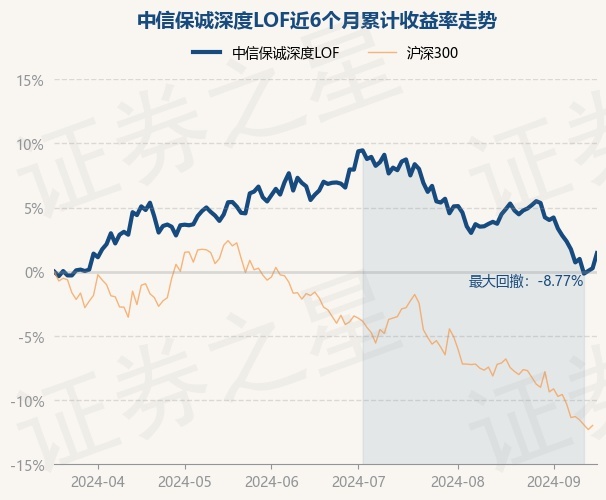 证券之星消息,9月18日,中信保诚深度LOF最新单位净值为1.7917元,累计净值为2.2757元,较前一交易日上涨1.17%。历史数据显示该基金近1个月下跌3.27%,近3个月下跌4.29%,近6个月上涨1.46%,近1年上涨7.96%。该基金近6个月的累计收益率走势如下图: