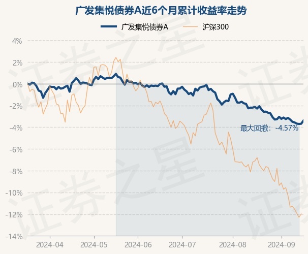 证券之星消息,9月18日,广发集悦债券A最新单位净值为0.9443元,累计净值为0.9443元,较前一交易日上涨0.3%。历史数据显示该基金近1个月下跌1.14%,近3个月下跌3.38%,近6个月下跌3.4%,近1年下跌4.24%。该基金近6个月的累计收益率走势如下图:
