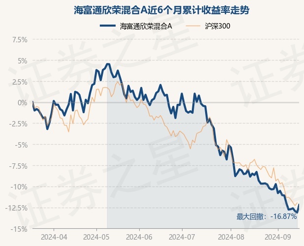 证券之星消息,9月18日,海富通欣荣混合A最新单位净值为1.0149元,累计净值为1.3308元,较前一交易日上涨1.05%。历史数据显示该基金近1个月下跌3.88%,近3个月下跌13.97%,近6个月下跌12.21%,近1年下跌13.31%。该基金近6个月的累计收益率走势如下图: