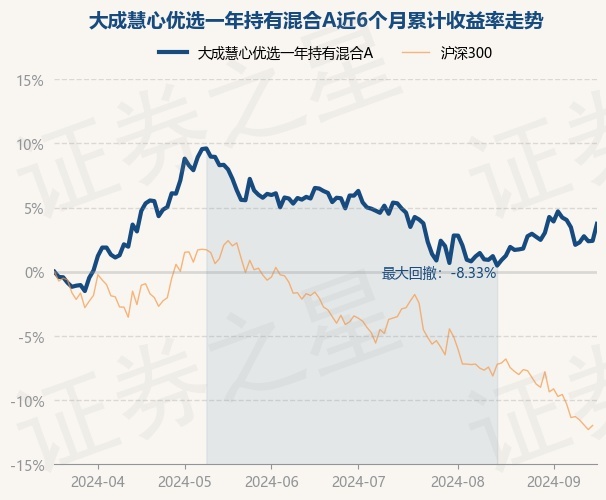 证券之星消息,9月18日,大成慧心优选一年持有混合A最新单位净值为1.0718元,累计净值为1.0718元,较前一交易日上涨1.29%。历史数据显示该基金近1个月上涨2.46%,近3个月下跌2.63%,近6个月上涨3.74%,近1年上涨5.21%。该基金近6个月的累计收益率走势如下图:
