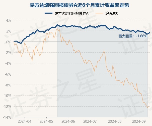 证券之星消息,9月18日,易方达增强回报债券A最新单位净值为1.363元,累计净值为2.55元,较前一交易日上涨0.22%。历史数据显示该基金近1个月下跌0.37%,近3个月下跌0.95%,近6个月上涨1.7%,近1年上涨6.1%。该基金近6个月的累计收益率走势如下图:
