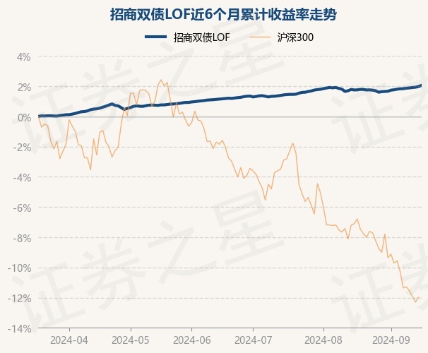 证券之星消息,9月18日,招商双债LOF最新单位净值为1.5697元,累计净值为1.7087元,较前一交易日上涨0.08%。历史数据显示该基金近1个月上涨0.29%,近3个月上涨0.88%,近6个月上涨2.05%,近1年上涨4.93%。该基金近6个月的累计收益率走势如下图: