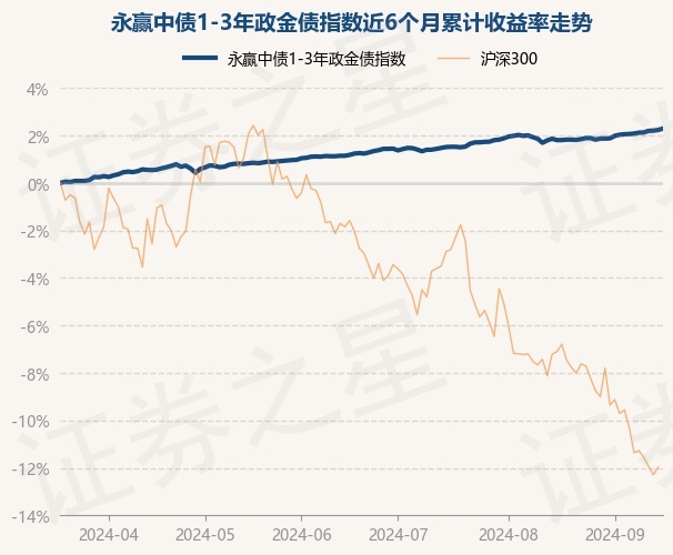 证券之星消息,9月18日,永赢中债1-3年政金债指数最新单位净值为1.072元,累计净值为1.185元,较前一交易日上涨0.06%。历史数据显示该基金近1个月上涨0.48%,近3个月上涨1.09%,近6个月上涨2.29%,近1年上涨4.21%。该基金近6个月的累计收益率走势如下图: