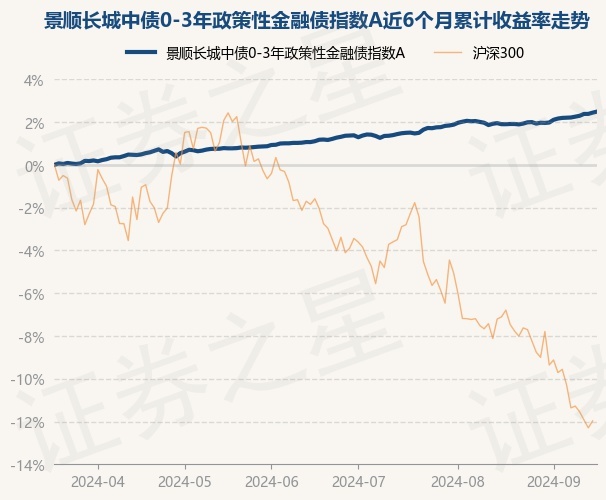 证券之星消息,9月18日,景顺长城中债0-3年政策性金融债指数A最新单位净值为1.0441元,累计净值为1.0531元,较前一交易日上涨0.05%。历史数据显示该基金近1个月上涨0.58%,近3个月上涨1.37%,近6个月上涨2.49%,近1年上涨4.75%。该基金近6个月的累计收益率走势如下图: