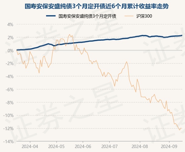 证券之星消息,9月18日,国寿安保安盛纯债3个月定开债最新单位净值为1.0352元,累计净值为1.2945元,较前一交易日上涨0.05%。历史数据显示该基金近1个月上涨0.13%,近3个月上涨0.77%,近6个月上涨2.27%,近1年上涨4.57%。该基金近6个月的累计收益率走势如下图: