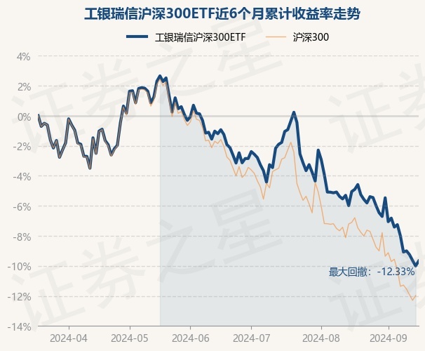 证券之星消息,9月18日,工银瑞信沪深300ETF最新单位净值为3.3292元,累计净值为0.923元,较前一交易日上涨0.36%。历史数据显示该基金近1个月下跌5.02%,近3个月下跌8.8%,近6个月下跌9.65%,近1年下跌12.44%。该基金近6个月的累计收益率走势如下图:
