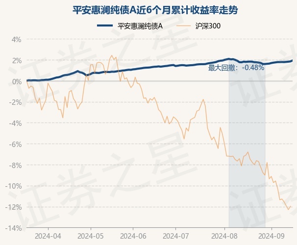 证券之星消息,9月18日,平安惠澜纯债A最新单位净值为1.1129元,累计净值为1.1979元,较前一交易日上涨0.09%。历史数据显示该基金近1个月上涨0.12%,近3个月上涨0.6%,近6个月上涨1.94%,近1年上涨4.13%。该基金近6个月的累计收益率走势如下图: