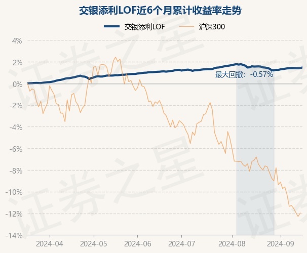 证券之星消息,9月18日,交银添利LOF最新单位净值为1.2132元,累计净值为1.8252元,较前一交易日上涨0.06%。历史数据显示该基金近1个月上涨4.69%,近3个月上涨5.19%,近6个月上涨6.32%,近1年上涨8.85%。该基金近6个月的累计收益率走势如下图: