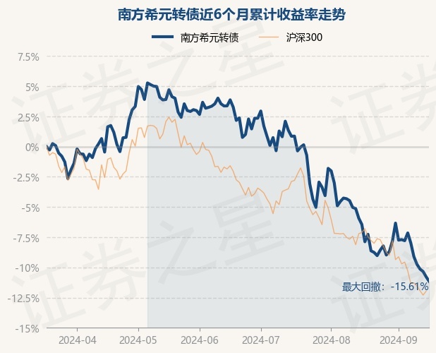 证券之星消息,9月18日,南方希元转债最新单位净值为1.1919元,累计净值为1.1919元,较前一交易日下跌0.43%。历史数据显示该基金近1个月下跌3.56%,近3个月下跌14.47%,近6个月下跌11.16%,近1年下跌18.13%。该基金近6个月的累计收益率走势如下图: