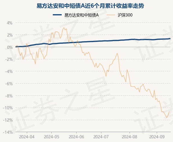 证券之星消息,9月19日,易方达安和中短债A最新单位净值为1.0774元,累计净值为1.1174元,较前一交易日上涨0.0%。历史数据显示该基金近1个月上涨0.13%,近3个月上涨0.47%,近6个月上涨1.34%,近1年上涨3.21%。该基金近6个月的累计收益率走势如下图: