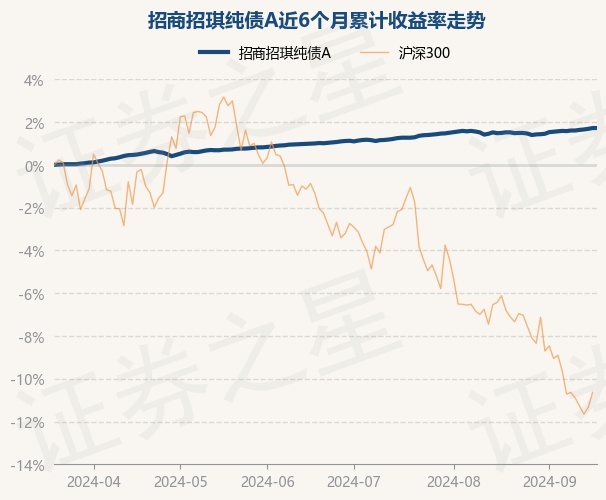 证券之星消息,9月19日,招商招琪纯债A最新单位净值为1.0582元,累计净值为1.2871元,较前一交易日上涨0.0%。历史数据显示该基金近1个月上涨0.2%,近3个月上涨0.71%,近6个月上涨1.72%,近1年上涨3.53%。该基金近6个月的累计收益率走势如下图: