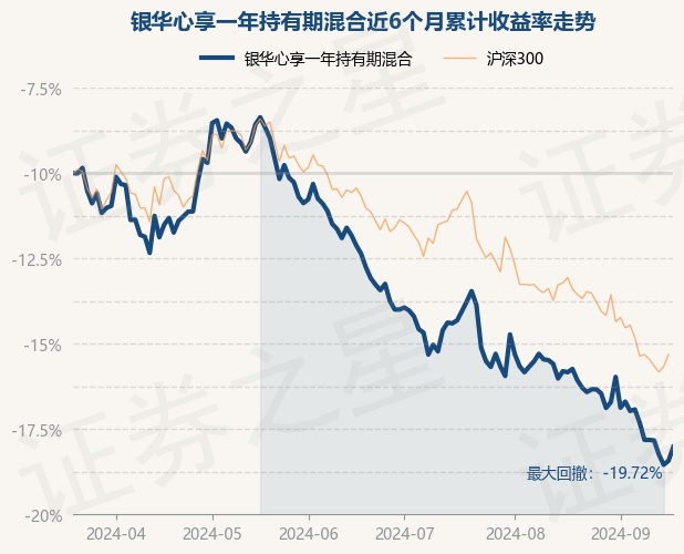 证券之星消息,9月19日,银华心享一年持有期混合最新单位净值为0.5693元,累计净值为0.5693元,较前一交易日上涨0.98%。历史数据显示该基金近1个月下跌5.16%,近3个月下跌11.89%,近6个月下跌16.04%,近1年下跌23.79%。该基金近6个月的累计收益率走势如下图: