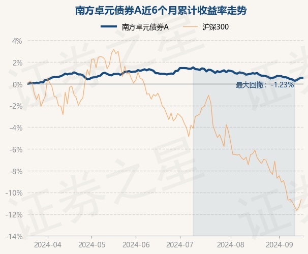 证券之星消息,9月19日,南方卓元债券A最新单位净值为1.067元,累计净值为1.3444元,较前一交易日下跌0.03%。历史数据显示该基金近1个月下跌0.47%,近3个月下跌0.39%,近6个月上涨0.52%,近1年上涨7.88%。该基金近6个月的累计收益率走势如下图: