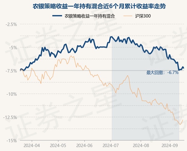 证券之星消息,9月19日,农银策略收益一年持有混合最新单位净值为0.6148元,累计净值为0.6148元,较前一交易日下跌0.31%。历史数据显示该基金近1个月下跌4.42%,近3个月下跌4.19%,近6个月上涨0.46%,近1年上涨1.47%。该基金近6个月的累计收益率走势如下图: