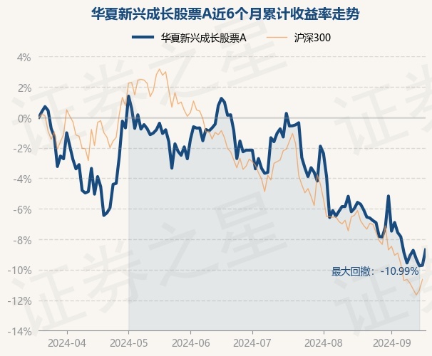 证券之星消息,9月19日,华夏新兴成长股票A最新单位净值为0.594元,累计净值为0.594元,较前一交易日上涨1.12%。历史数据显示该基金近1个月下跌3.18%,近3个月下跌9.6%,近6个月下跌8.7%,近1年下跌9.47%。该基金近6个月的累计收益率走势如下图: