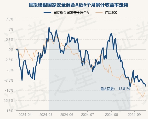 证券之星消息,9月19日,国投瑞银国家安全混合A最新单位净值为0.863元,累计净值为1.022元,较前一交易日下跌0.69%。历史数据显示该基金近1个月下跌4.32%,近3个月下跌10.2%,近6个月下跌8.97%,近1年下跌17.26%。该基金近6个月的累计收益率走势如下图: