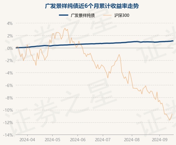证券之星消息,9月19日,广发景祥纯债最新单位净值为1.0801元,累计净值为1.2454元,较前一交易日上涨0.0%。历史数据显示该基金近1个月上涨0.15%,近3个月上涨0.47%,近6个月上涨1.11%,近1年上涨2.47%。该基金近6个月的累计收益率走势如下图: