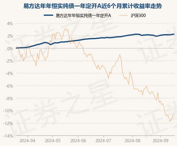 证券之星消息,9月19日,易方达年年恒实纯债一年定开A最新单位净值为1.0344元,累计净值为1.1523元,较前一交易日下跌0.01%。历史数据显示该基金近1个月上涨0.08%,近3个月上涨0.69%,近6个月上涨2.22%,近1年上涨4.81%。该基金近6个月的累计收益率走势如下图: