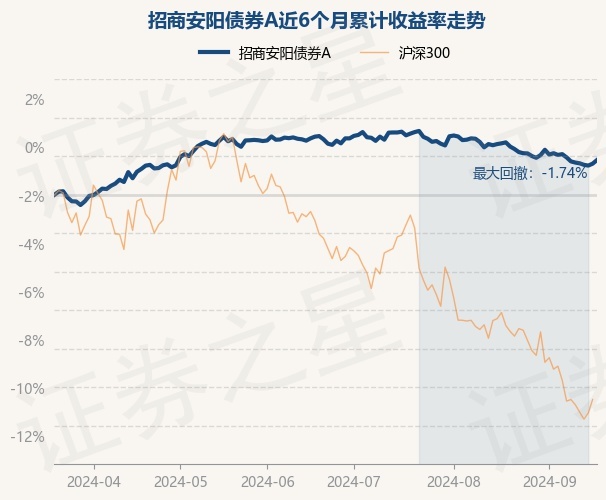 证券之星消息,9月19日,招商安阳债券A最新单位净值为1.0299元,累计净值为1.215元,较前一交易日上涨0.18%。历史数据显示该基金近1个月下跌0.89%,近3个月下跌1.18%,近6个月上涨1.8%,近1年上涨4.75%。该基金近6个月的累计收益率走势如下图: