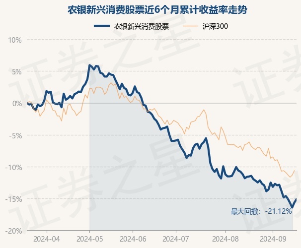 证券之星消息,9月19日,农银新兴消费股票最新单位净值为0.5152元,累计净值为0.5152元,较前一交易日上涨0.61%。历史数据显示该基金近1个月下跌4.15%,近3个月下跌12.69%,近6个月下跌15.12%,近1年下跌19.58%。该基金近6个月的累计收益率走势如下图: