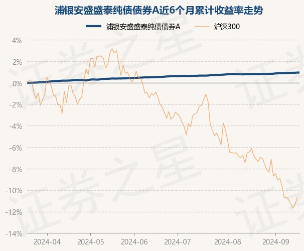 证券之星消息,9月19日,浦银安盛盛泰纯债债券A最新单位净值为1.1385元,累计净值为1.2534元,较前一交易日上涨0.0%。历史数据显示该基金近1个月上涨0.13%,近3个月上涨0.41%,近6个月上涨0.95%,近1年上涨2.17%。该基金近6个月的累计收益率走势如下图: